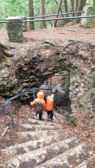 After having so much fun at Bronte Creek, we decided to head out for another forest walk the next week. I set myself the task of finding a suitable trail destination and landed on Elora Gorge. I’d heard of Elora Gorge before because in the summer it is a hot destination for river tubing. I’d always been curious and had it tucked away in my “one day when the boys are bigger” brain drawer. But when I realized there were also trails that ran along the gorge, I figured we could check it out. Part of me also wanted to see if it would be worth it to come back for some tubing in a couple of years.